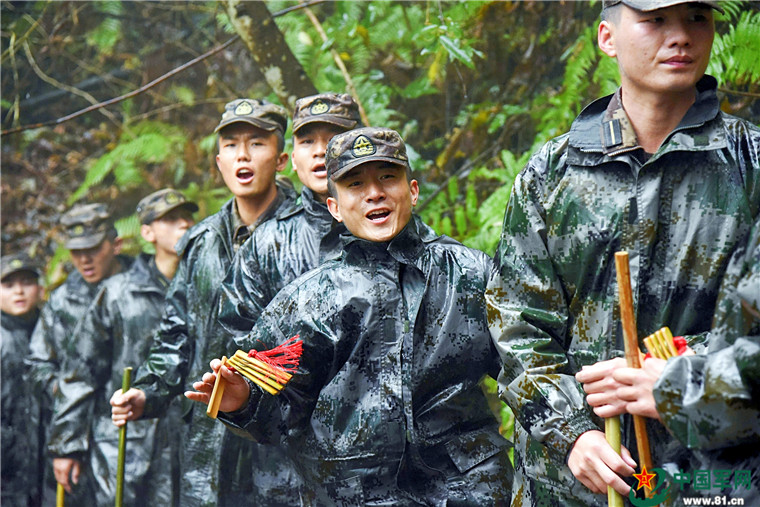 为体验革命之艰辛,学员们重走红军挑梁小道,先徒步行军14公里到达源头村,再进行3公里的登山。天气寒冷,小雨纷飞,很多同学都打起了退堂鼓,为鼓舞士气,八队组织了形式各样的小节目,有快板评书、三句半、唱红歌等等,在集体氛围的烘托下,学员们一路高歌猛进,向着山顶迈进。