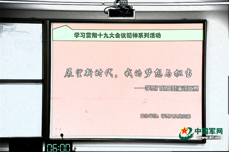 “党的十九大对我们青年军人发出了伟大号召,我们要树立伟大梦想,勇于追梦,勤于圆梦,时刻做到‘党在心,枪在手’,做党的好战士,扎扎实实练就过硬素质本领。”在该队的自习教室里,一场以“展望新时代,我的梦想与担当”为主题的演讲比赛正在如火如荼地进行。首先登场的选手王宏峰以《少年中国》为题,用以胡适、李大钊、鲁迅等为代表的青年为中华民族伟大复兴而不懈奋斗的历史,激发大家培养作为青年官兵的豪迈感、使命感和紧迫感,鼓励大家立足本职岗位建功立业……台上选手声情并茂的演讲时而慷慨激昂,时而舒缓动情,引起在场官兵的强烈共鸣,为中队官兵带来一次精神的洗礼。