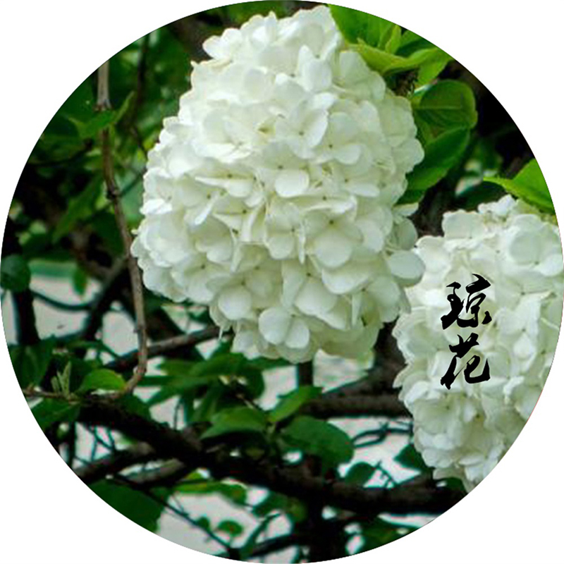 琼花树干并不粗壮,枝疏叶细,形态无异,但花却奇美。乍看,花大如盘,洁白如玉;细看,那嫩黄的花蕊,那玉白的花瓣,好像由无数颗细小而晶莹的珍珠镶嵌而成,在和煦的春风中摇曳出万种风情,透露出一股精灵之气。