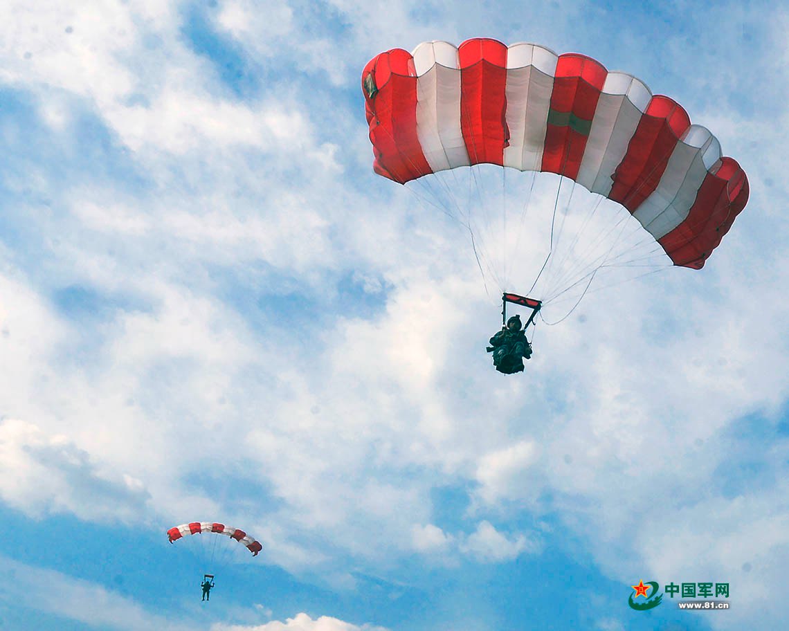 参加翼伞定点着陆课目的官兵正在进行空中操纵。方超 摄