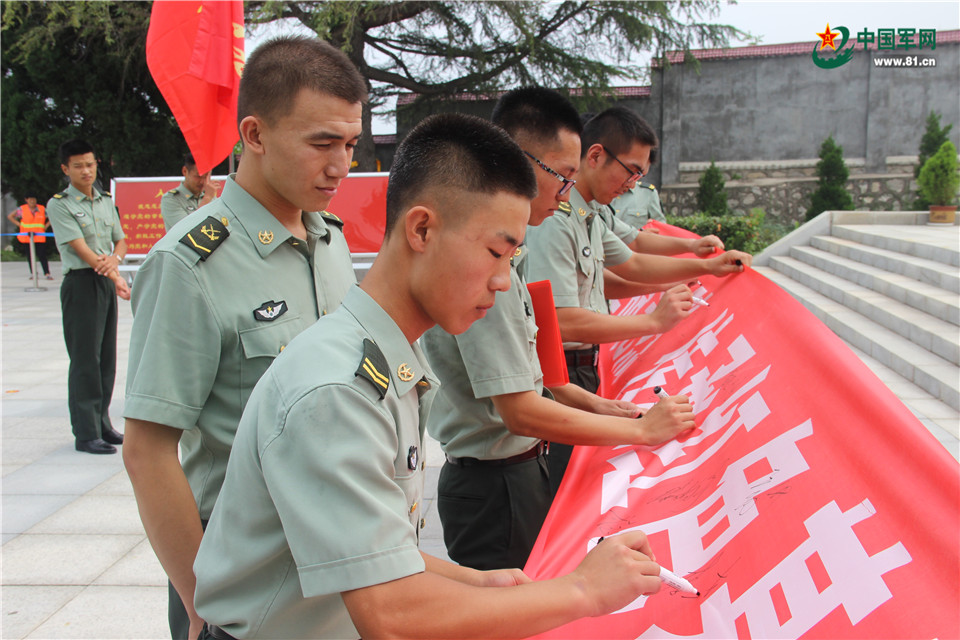 最后,官兵们在“缅怀革命先烈,传承红色基因”的横幅上进行了集体签名,在纪念碑面前进行了合影留念。
