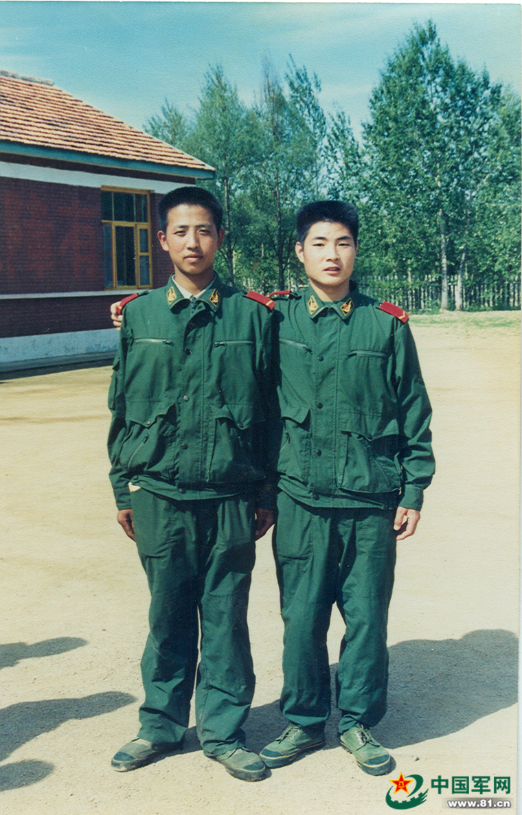 刚入伍时,杜坤明(左)满眼遮掩不住的稚嫩。