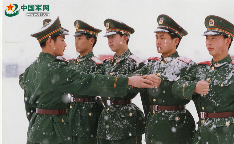 杜坤明第二年就当上了副班长,即使在大雪纷飞的日子,他依然组织战友进行训练。