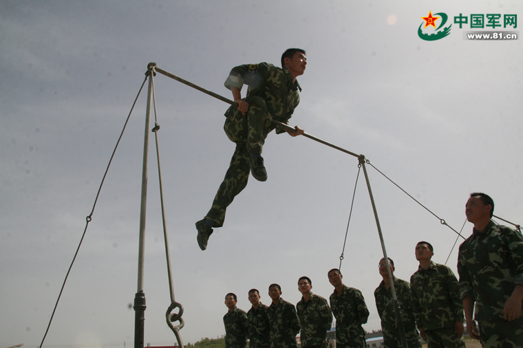 军事素质过硬的杜坤明,经常为战友做示范。