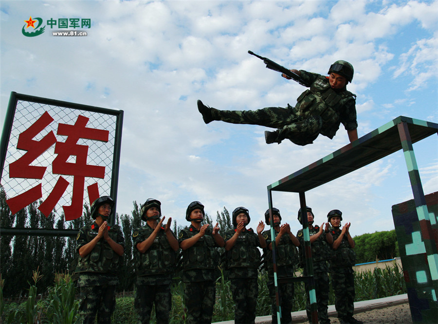在"沙海老兵"精神的传承之地,特战队员"秀肌肉"