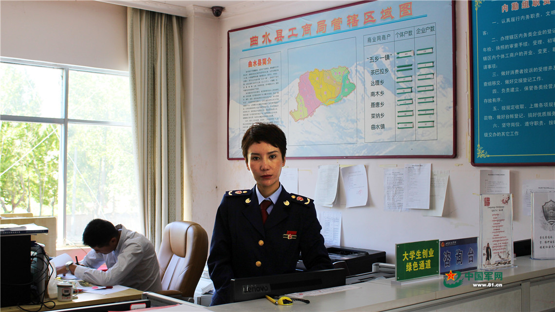 在2003年全国抗击非典期间,巴桑卓玛勇赴隔离传染科,成为当地年龄最小的一线医护人员,出色地完成各项紧急任务,同年荣立个人三等功。退伍到曲水县工商局至今,她一直从事登记注册工作,见证了曲水县企业户数从2位数增长至如今的3位数。“全县大约95%商户的登记注册工作都是经我手完成的。”巴桑卓玛说。(雷志远 摄影)