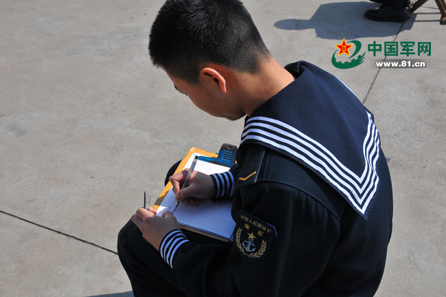 在进行摩尔斯码信号识别训练中,学兵集中精力记录教员所传递的信息。