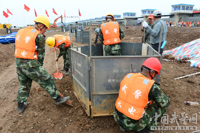 武警水电七支队官兵开展处置管涌围板围井演练。