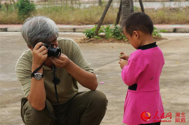 图为省摄协副主席国家金像奖得主宋刚明(左一)正在拍刘家桥村小移民时的情景。