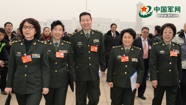 3月3日下午,全国政协十二届二次会议在北京人民大会堂隆重召开。出席会议的军队政协委员满怀信心步入会场。解放军报记者 岱天荣摄