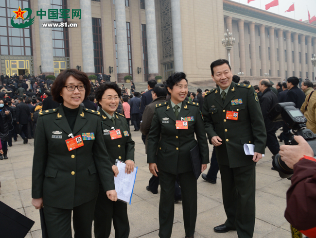 3月3日,全国政协十二届二次会议开幕之前,军队委员们相聚在人民大会堂广场。解放军报记者冯凯旋