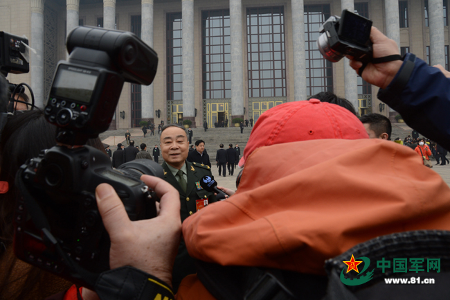 3月3日,军队政协委员接受媒体采访。解放军报记者冯凯旋