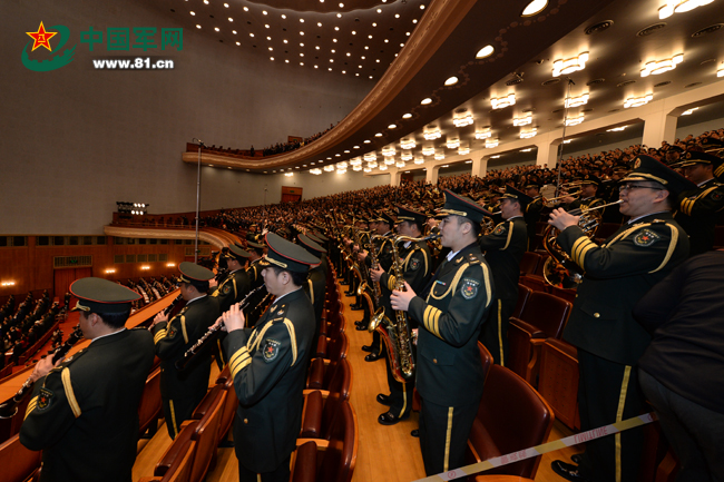 3月5日,十二届全国人大二次会议在北京人民大会堂召开。大会在解放军军乐团奏响的国歌声中隆重开幕。解放军报记者 岱天荣摄