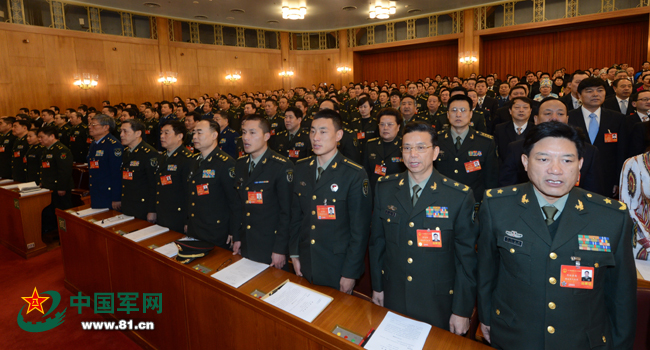 3月5日,十二届全国人大二次会议在嘹亮的国歌声中开幕。 解放军报记者 冯凯旋摄