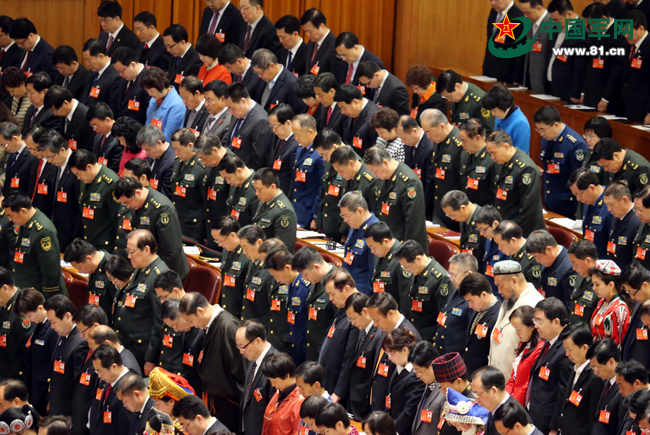3月5日,第十二届全国人民代表大会第二次会议在北京人民大会堂开幕。全体与会人员为3月1日晚在云南昆明火车站发生的严重暴力恐怖事件中的遇难群众默哀。解放军报记者 张雷摄