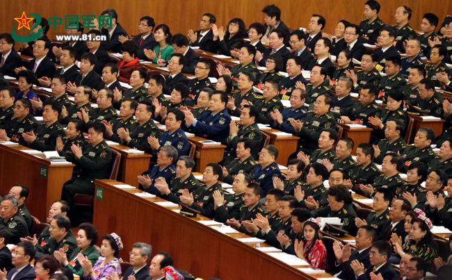 3月5日上午,第十二届全国人民代表大会第二次会议在人民大会堂开幕,听取国务院总理李克强作政府工作报告,审查计划报告和预算报告。图为代表们在热烈鼓掌。解放军报记者 张雷摄