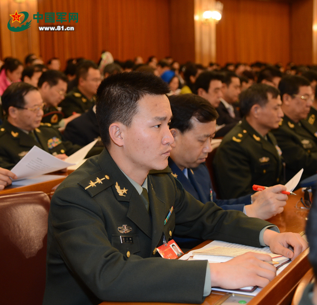 3月5日上午,第十二届全国人民代表大会第二次会议在人民大会堂开幕。图为解放军代表认真聆听政府工作报告。 解放军报记者 冯凯旋摄