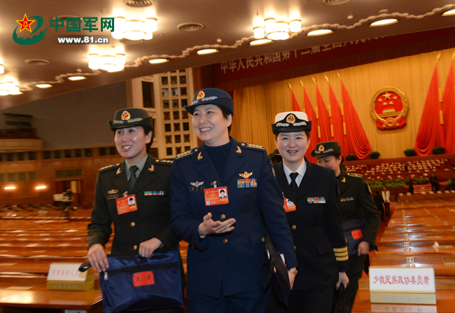 3月5日,十二届全国人大二次会议开幕式后,解放军代表走出会场。 解放军报记者 冯凯旋摄
