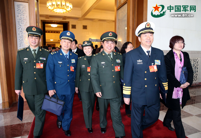 3月5日上午,第十二届全国人民代表大会第二次会议在人民大会堂开幕。图为军队人大代表意气风发、满怀信心步出会场。解放军报记者 张雷摄