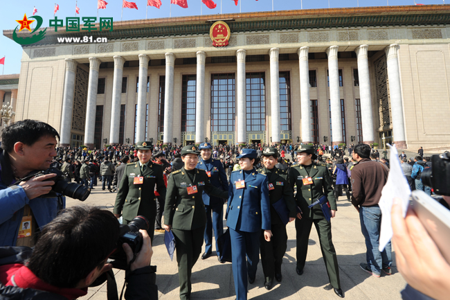 3月5日,全国人大十二届二次会议开幕式结束后,军队代表走出人民大会堂。解放军报记者 冯凯旋摄