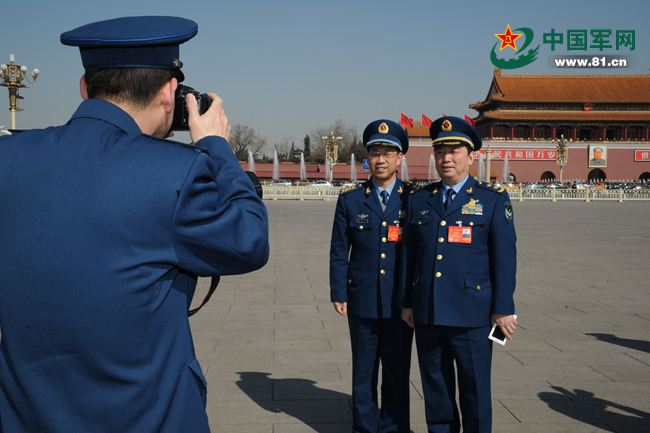 3月5日,十二届全国人大二次会议在北京人民大会堂隆重开幕。走出会场的军队人大代表在晴朗的天空下,留下难忘的瞬间。解放军报记者 岱天荣摄