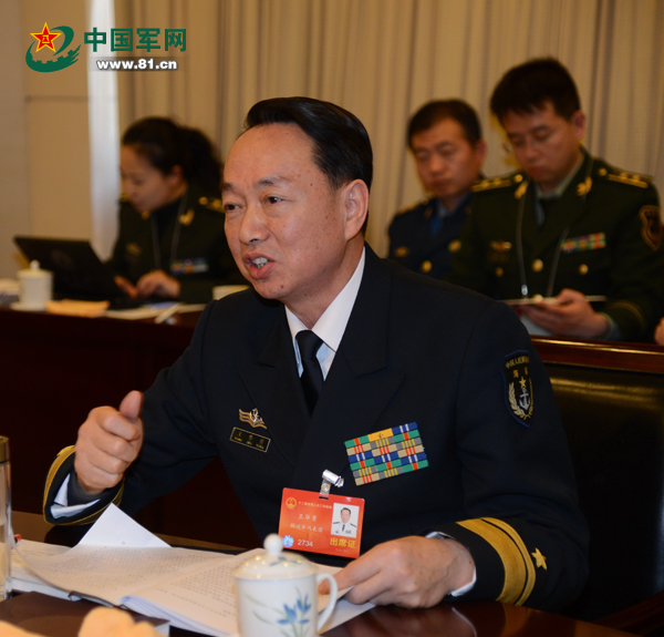 3月5日下午,解放军代表团分组审议政府工作报告,王华勇代表就增强海防管控,维护国家主权和海洋权益等问题发言。 解放军报记者 冯凯旋摄