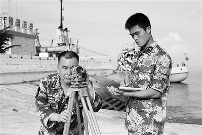 ◢ 黝黑、寡言、头发灰白……记者不敢相信,站在眼前的这位中等个“半小老头”,就是南海舰队南沙守备部队第一批大学生干部、新一代守礁人——李文波。