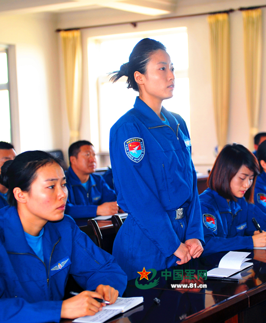 空军八一飞行表演队提问飞行准备情况,女飞行员应答自如。张鹏焱摄