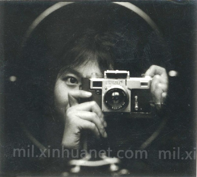 1972年,爱好摄影的沈玲对着镜子自拍练习摄影技术