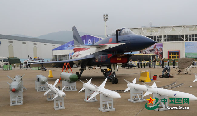 11月11日,工作人员在珠海航展开幕前撤掉盖在战机上的迷彩帆布,为静态展示演做准备。张雪鸿 摄