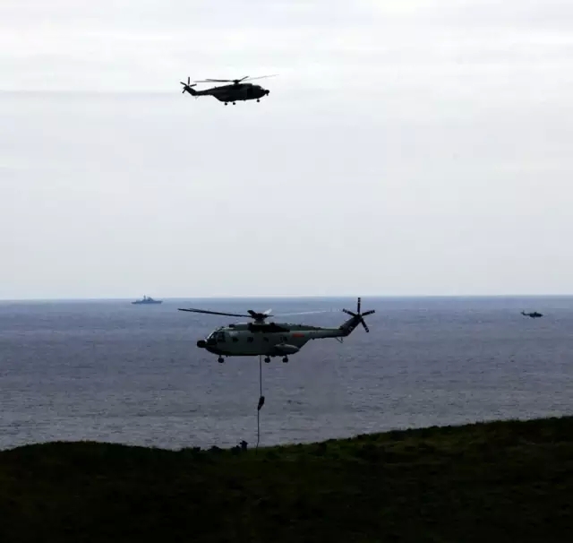 当两栖侦察中队中队长梁秦强从12米高空悬停的直升机滑下,一脚踩到彼得大帝湾克列尔卡角的土地上,他便创造了一个历史:中国海军陆战队首次在境外展开立体登陆演习。