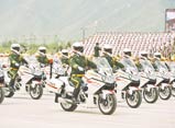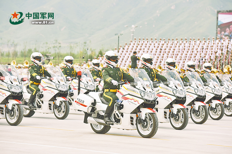 阅兵场上,伴着“轰隆隆……”的声响,如同一把锋芒凛凛的利刃,一个箭头阵型的摩托车队缓缓驶来。伴着闪烁的警灯,所过之地瞬间变得流光溢彩。