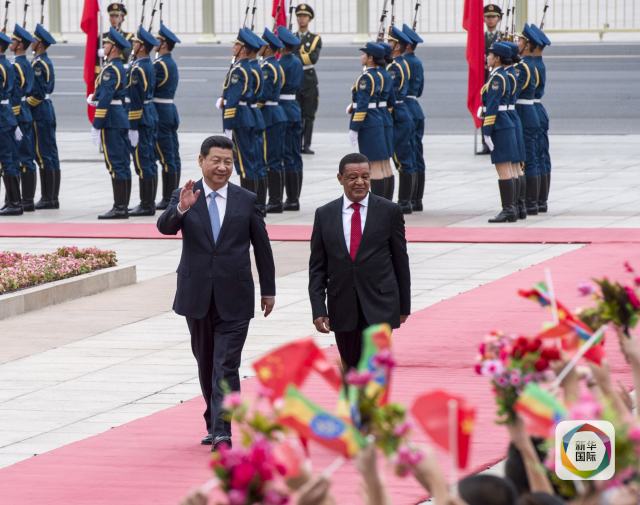 2014年7月9日,国家主席习近平在北京人民大会堂同埃塞俄比亚总统穆拉图举行会谈。会谈前,习近平在东门外广场为穆拉图举行欢迎仪式。新华社记者 王晔 摄