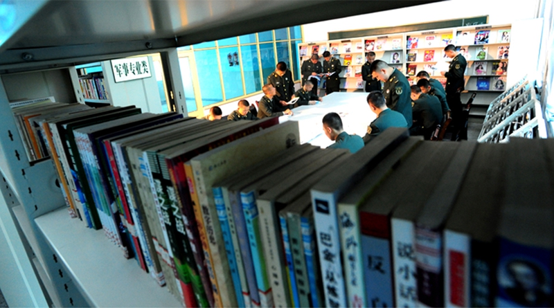 第二炮兵某洲际战略导弹旅官兵在图书室阅读(2015年5月18日摄)。新华社发(宋波 摄)