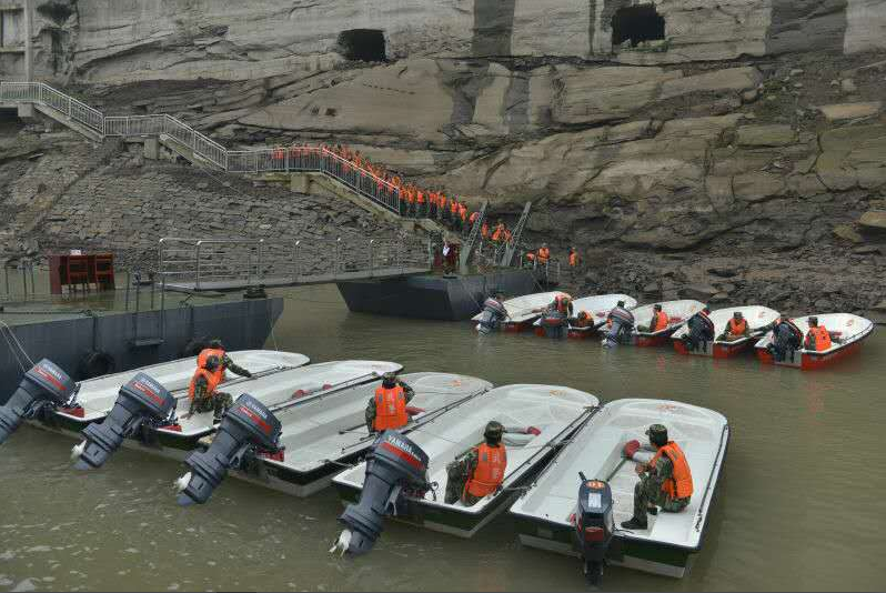 中国军网6月2日电 (谢佳、记者张海华)今早,驻守在三峡库区的武警部队首支专业船艇部队——武警重庆总队船艇支队立即启动抢险预案,修订预案方案,特别是正在万州某水域进行水上蛙人救援训练的该部潜水分队连夜做好出动救援的各项准备,目前该部官兵已做好一切出动准备,随时等待命令出动救援。(摄影宋亚雷)