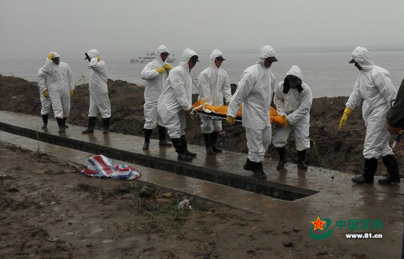 武警湖北总队官兵搬运“东方之星”沉船遇难人员遗体
