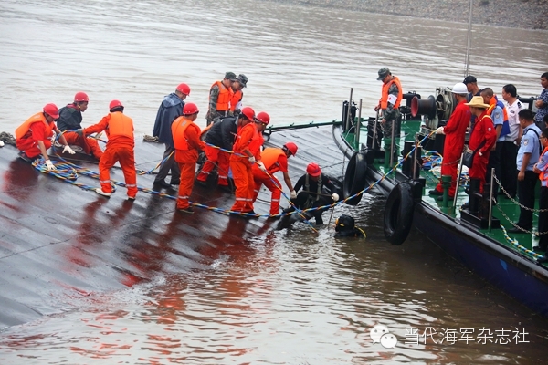 时间就是生命,不能再耽误了!官东三下五除二,脱下自己的重装具,给小伙子穿好,催促另两名潜水员护送其出水。这名21岁的重庆籍船员陈书涵得救了!