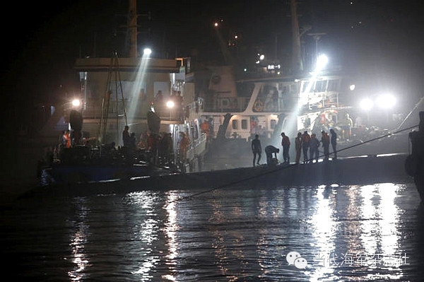 天黑了,现场下起雨,气温骤降。由于客轮结构复杂、水下搜寻范围扩大,数小时内,潜水员们已先后下水20多批次,体力消耗极大,但他们没有一人卸下装具。