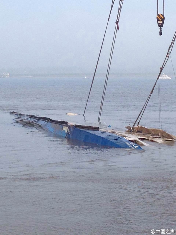 扶正打捞继续进行。杨博宇摄