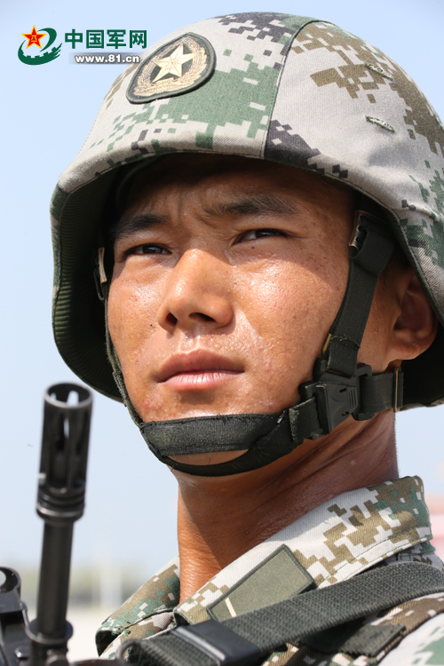 来自“狼牙山五壮士”英模部队方队的蒙古族战士何那仁·满都拉是去年刚刚入伍的新战士。何那仁•满都拉在蒙语中是太阳刚刚升起的意思。敢于挑战、充满朝气的满都拉也没有辜负自己这个名字。听说部队要组建阅兵方队,满都拉主动报名参加。来到集训队,他拿出了十二分的力气来训练。刻苦的训练换来了教练的认可,再加上他身形沉稳,站军姿又直又挺,没多久他就被安排到第9排面的第2名,成为排头兵的后备队员。