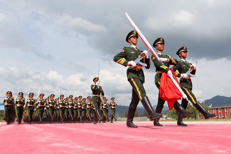 纪念大会升旗仪式护卫方队的队员在训练中(8月25日摄)。新华社发(牛成浩摄)