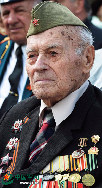 5月9日,俄罗斯新罗西斯克市举行盛大阅兵仪式,纪念卫国战争胜利70周年。图为阅兵仪式上参加二战的俄罗斯老兵。中国军网记者 李靖摄