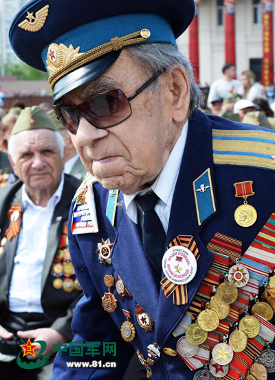 5月9日,俄罗斯新罗西斯克市举行盛大阅兵仪式,纪念卫国战争胜利70周年。图为阅兵仪式上参加二战的俄罗斯老兵。中国军网记者 李靖摄