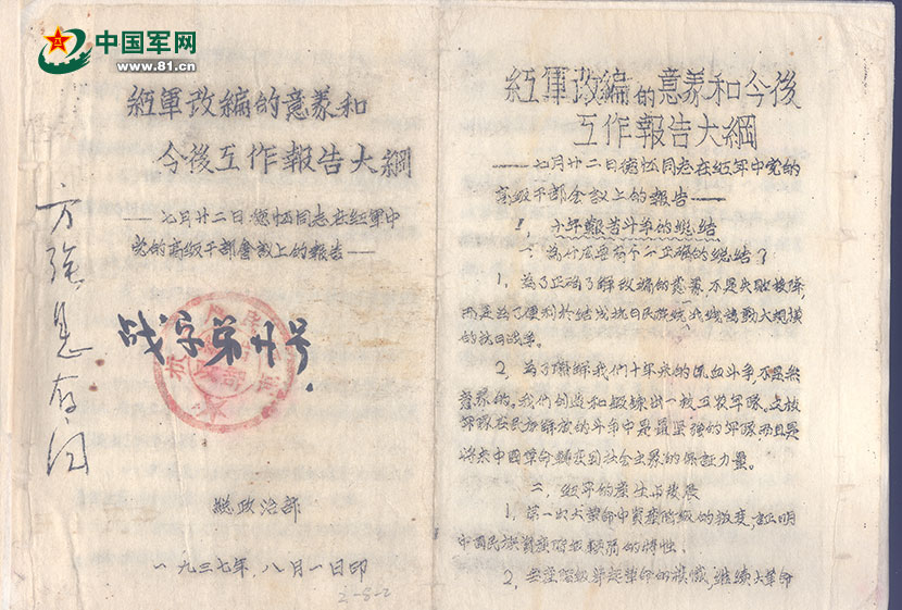 红军改编时思想出现过波动,很多官兵在感情上过不去、想不通,不愿换下八角帽、摘下红五星。