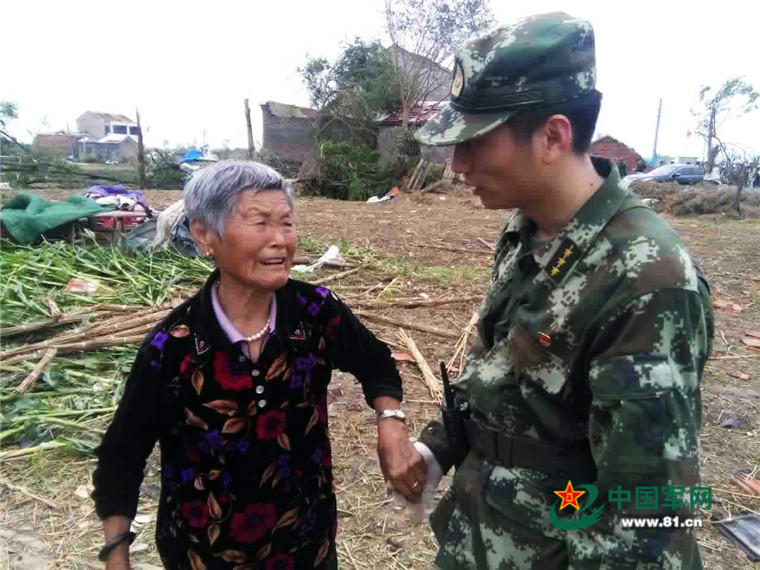 图中大娘已经83岁,由于子女外出打工,灾情发生时只有她一个人在家。面对灾后的满目疮痍,大娘紧握住武警官兵的手不愿放开。