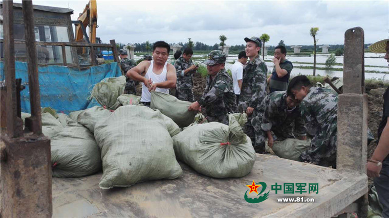 汉川军垦河堤坝遇滑坡险情 50民兵迅疾抢险