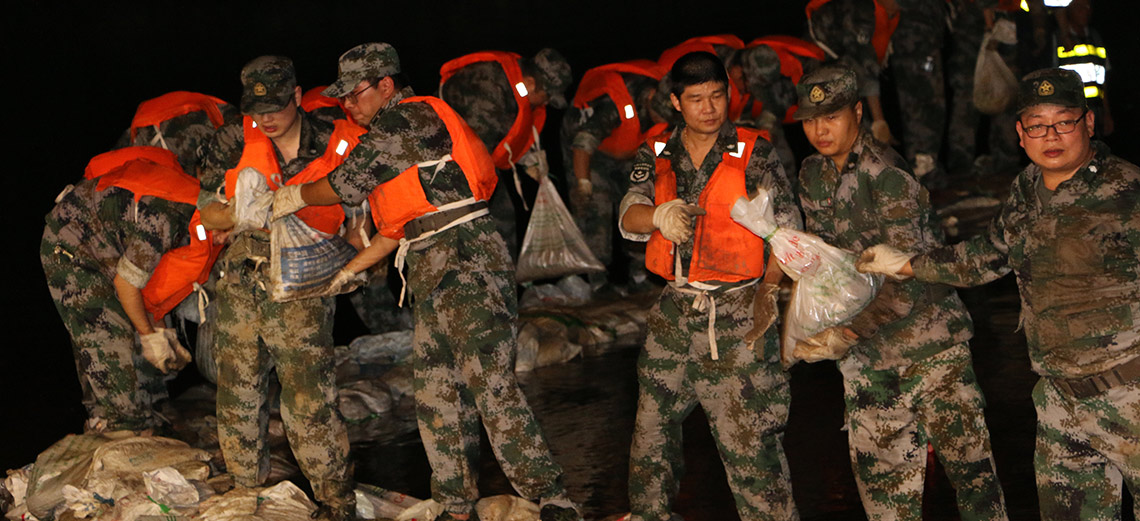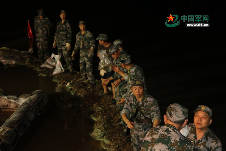 中国军网武汉7月5日电 李林、韩秦虎、杨桐报道:4日18时,位于武汉临江大道青山区政府后侧长江边一倒口湖发生6处管涌,接到险情通知后,湖北预备役高炮师和武汉警备区迅速出动300余名民兵预备役官兵,携带抢险器材奔赴救援现场,并迅速按照区防汛指挥部要求展开抢险救援行动。