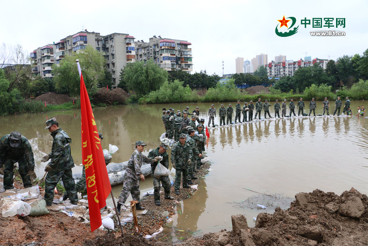 长江干堤武汉青山段出现6处严重管涌 子弟兵连夜抢险