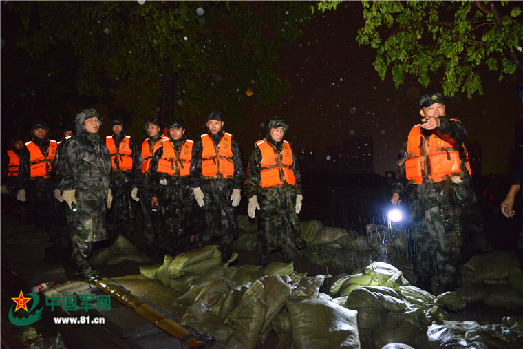 江苏南京:“95后”战士战斗在抗洪抢险一线
