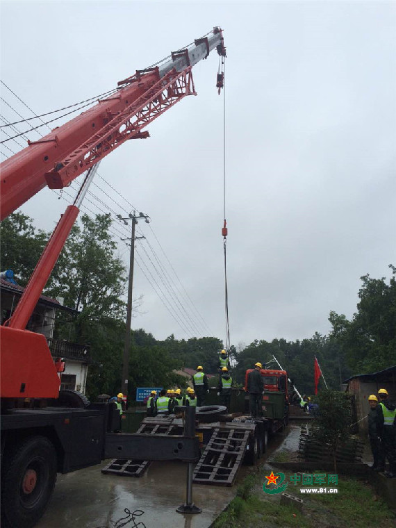 中国军网7月6日电 陆丽环 韦天龙报道:受持续强降雨的影响,安庆太湖县102县道太湖段古路河城江桥发生垮塌,太湖至望江道路全线断通,沿路约10万余人通行受阻。接到上级命令后,武警交通三总队八支队紧急抽组92名兵力,携带10余台套机械设备和一座大型钢架桥前往灾害现场。目前任务部队正组织现地勘察,制定处置方案,计划在最短时间内架设一座钢便桥,确保主汛期间道路通行。